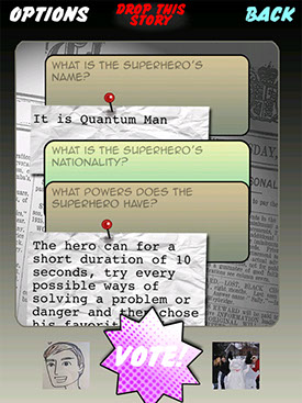 "Our Superhero puts players in the role of reporter at the Heroic Times, a newspaper dedicated to breaking stories about the larger-than-life heroes & villains around us. The game brought to the I Phone one of the classic of Theater Improvisation."